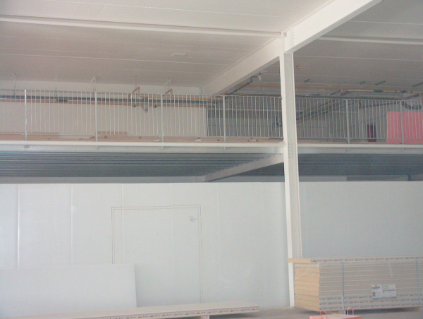 Balustrades to mezzanine storage level at Eastgate Market in Bristol, for Midas Construction. These works were part of a 185,000 contract which included the supply and installation of straight and helical stairs, glazed balustrades, walkways, canopies, fencing, gates and signage for the development.